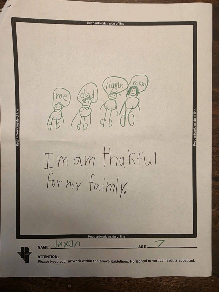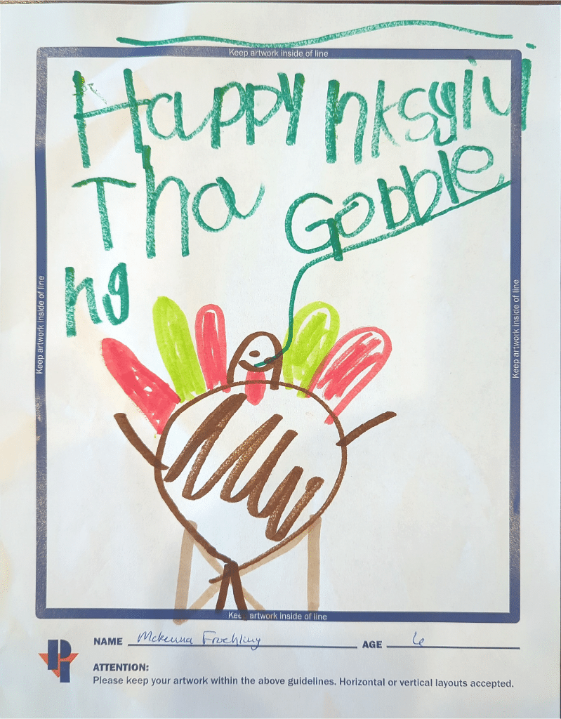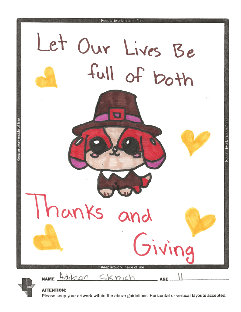This contest invites kids aged 12 and under to create a drawing that reflects what Thanksgiving means to them or what they are thankful for. Check out the incredible submissions we received from Park’s talented young artists!