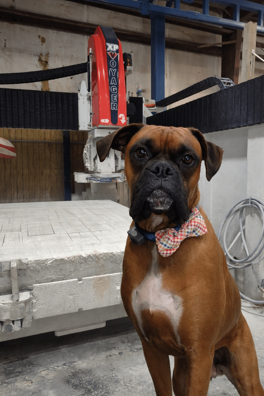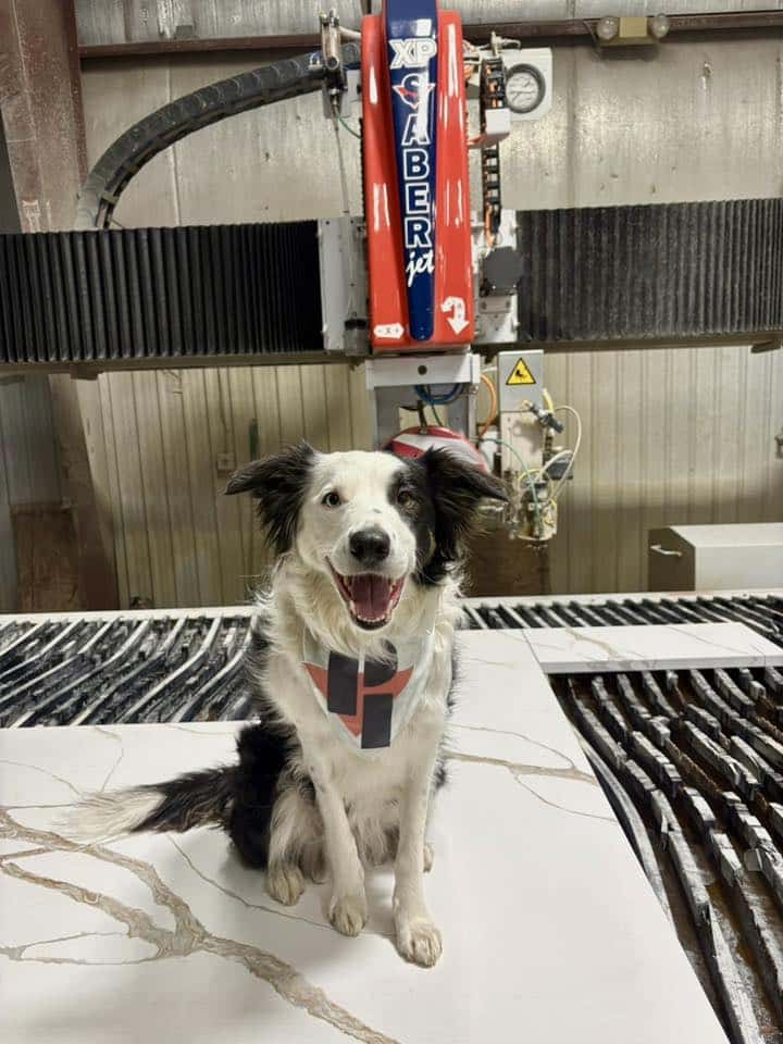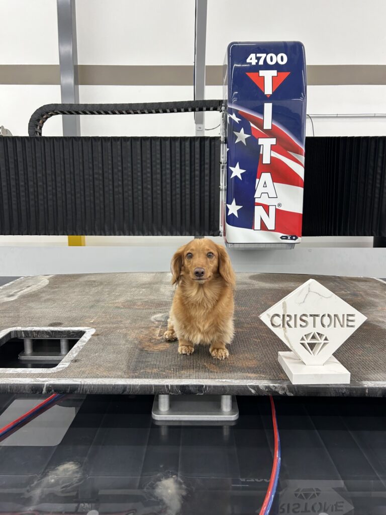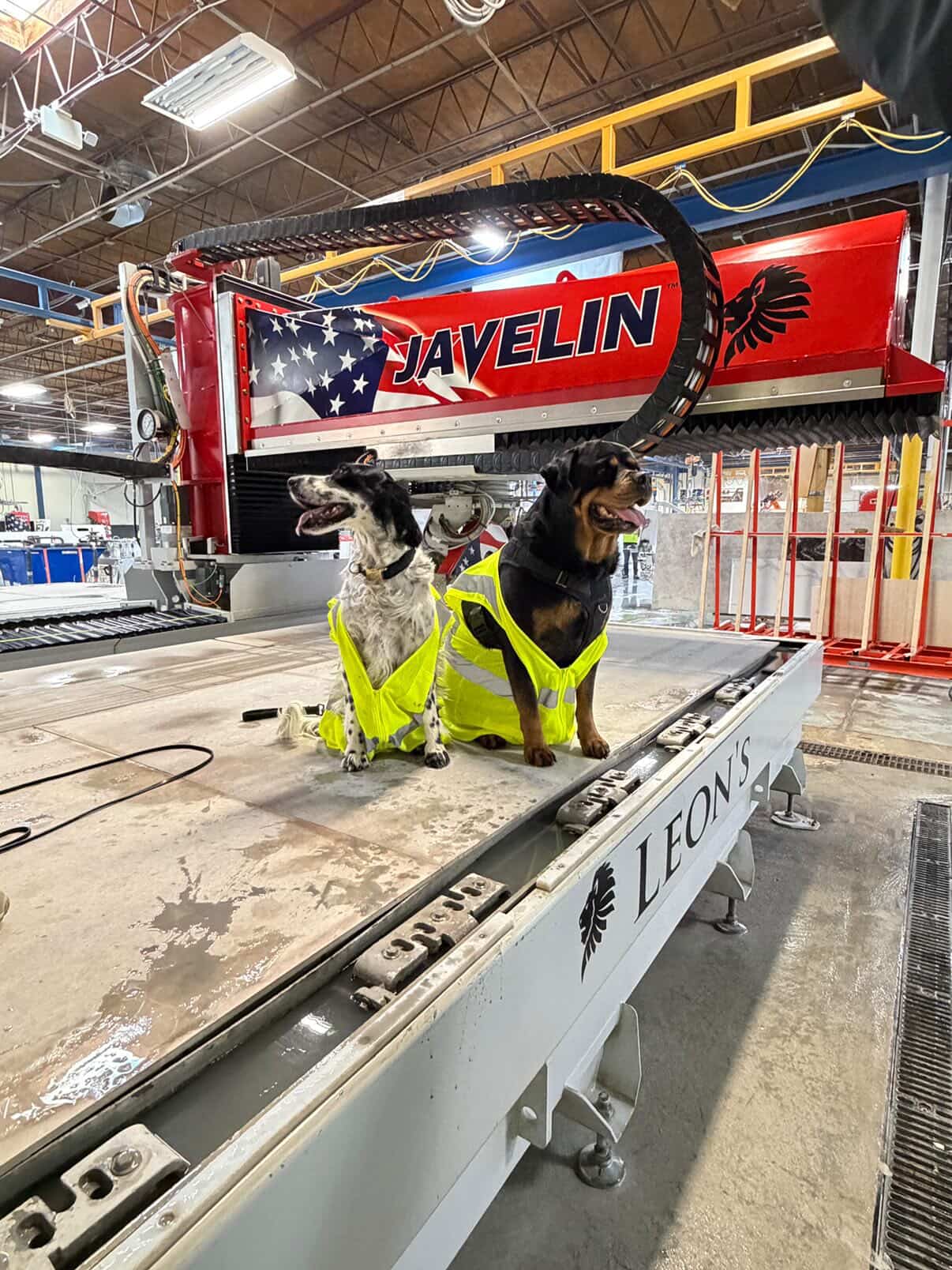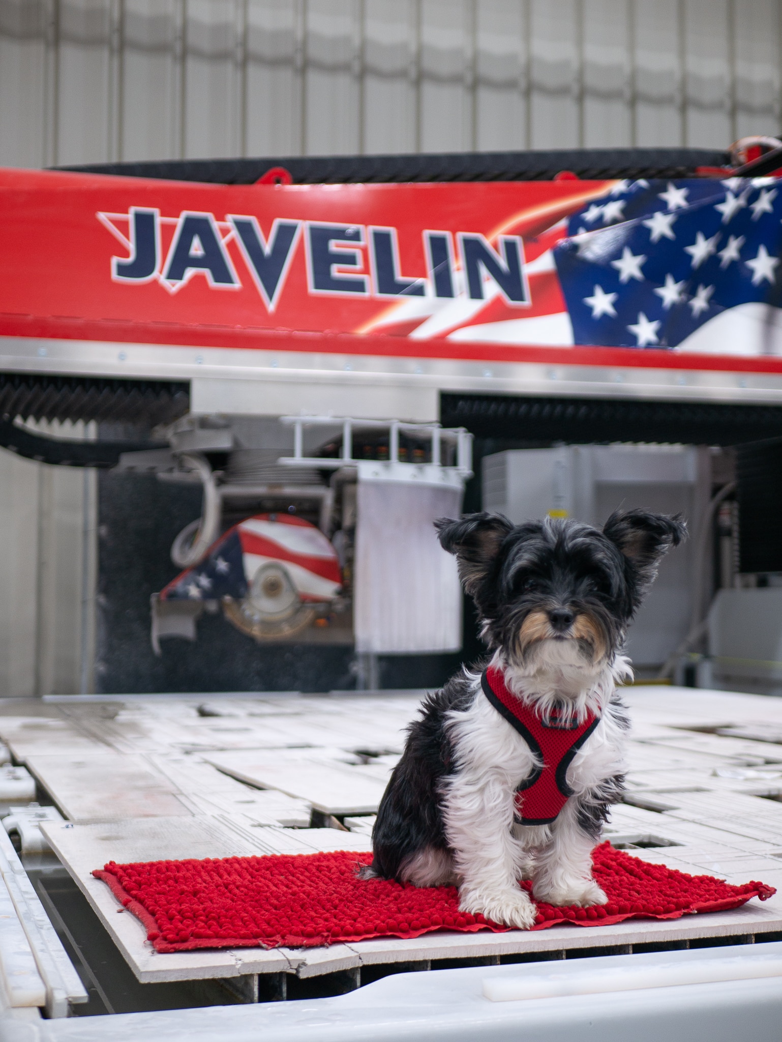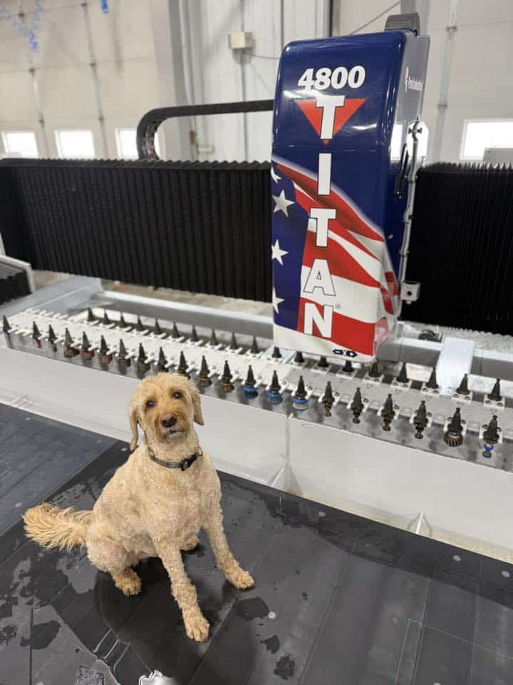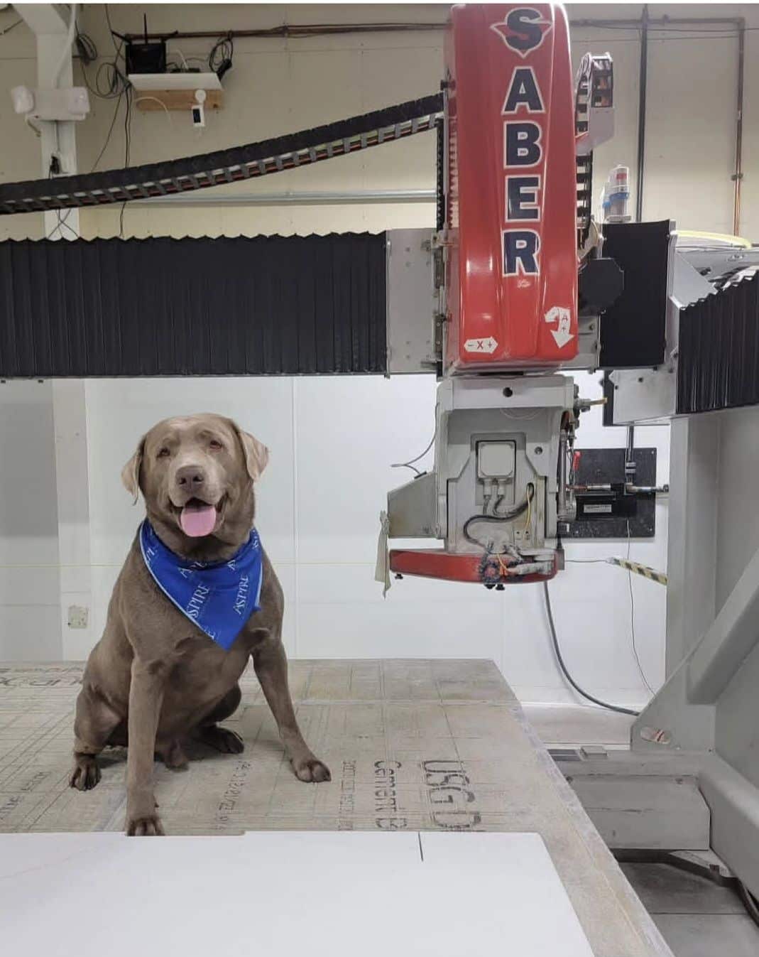Captain, Eli, Molly, Willow, and Khaleesi of Mountain Marble & Tile stole the show as a team, posing together on a VOYAGER XP CNC Saw and proving teamwork really does make the dream work.