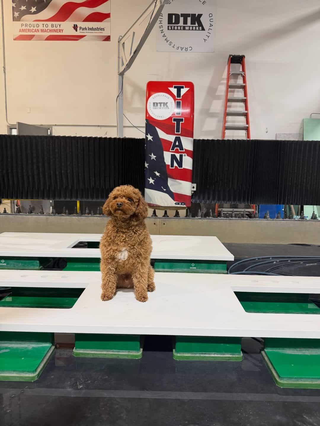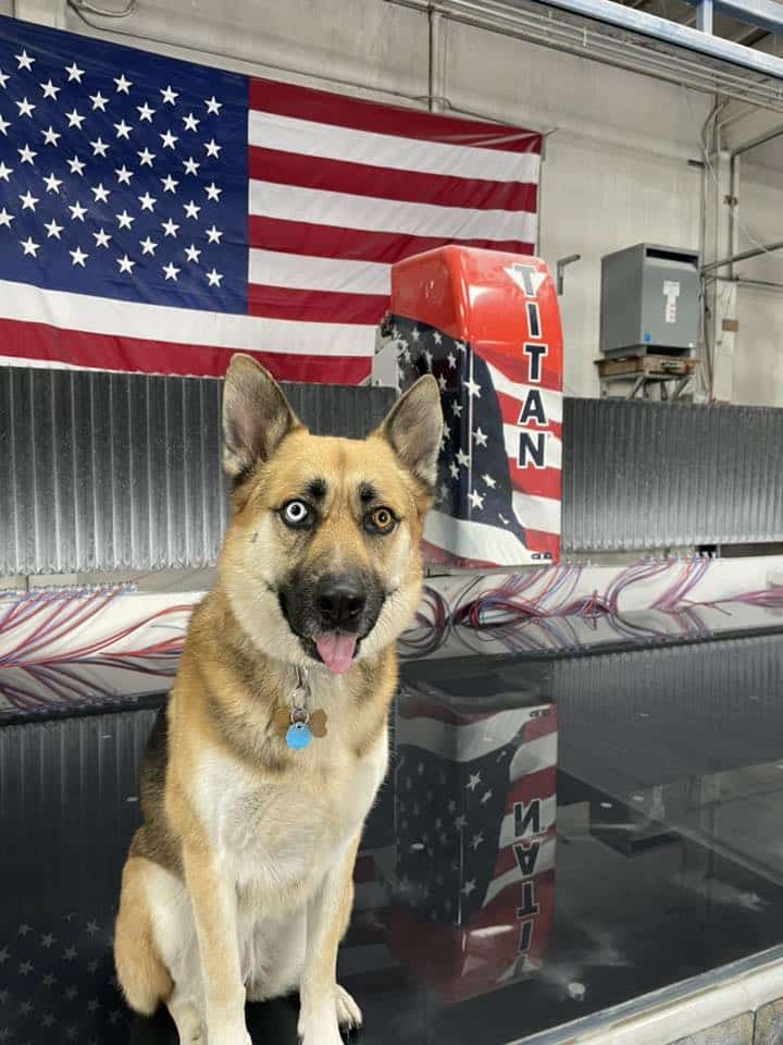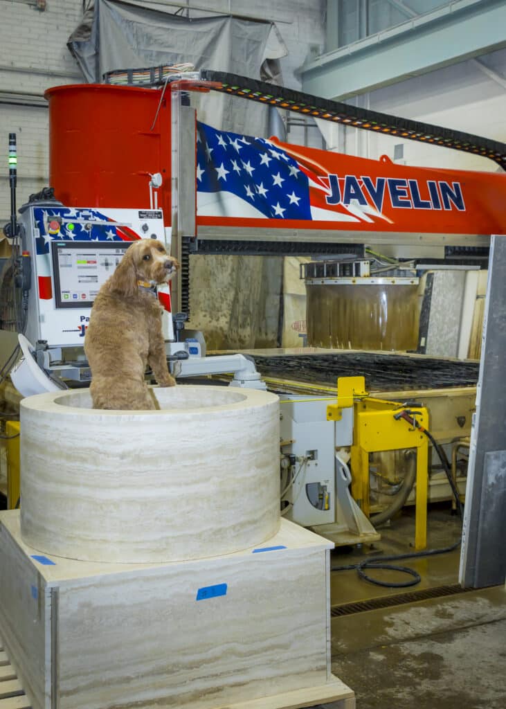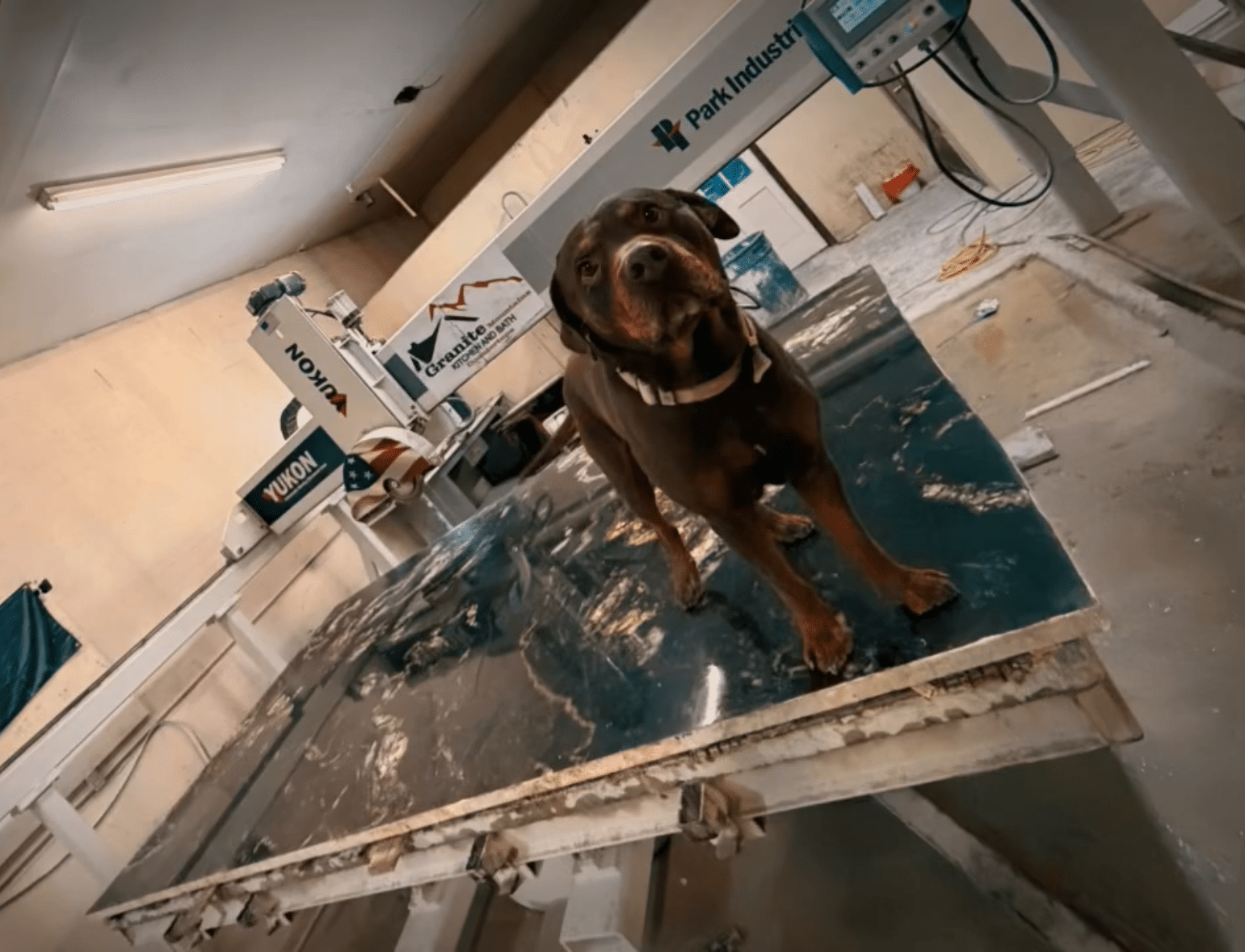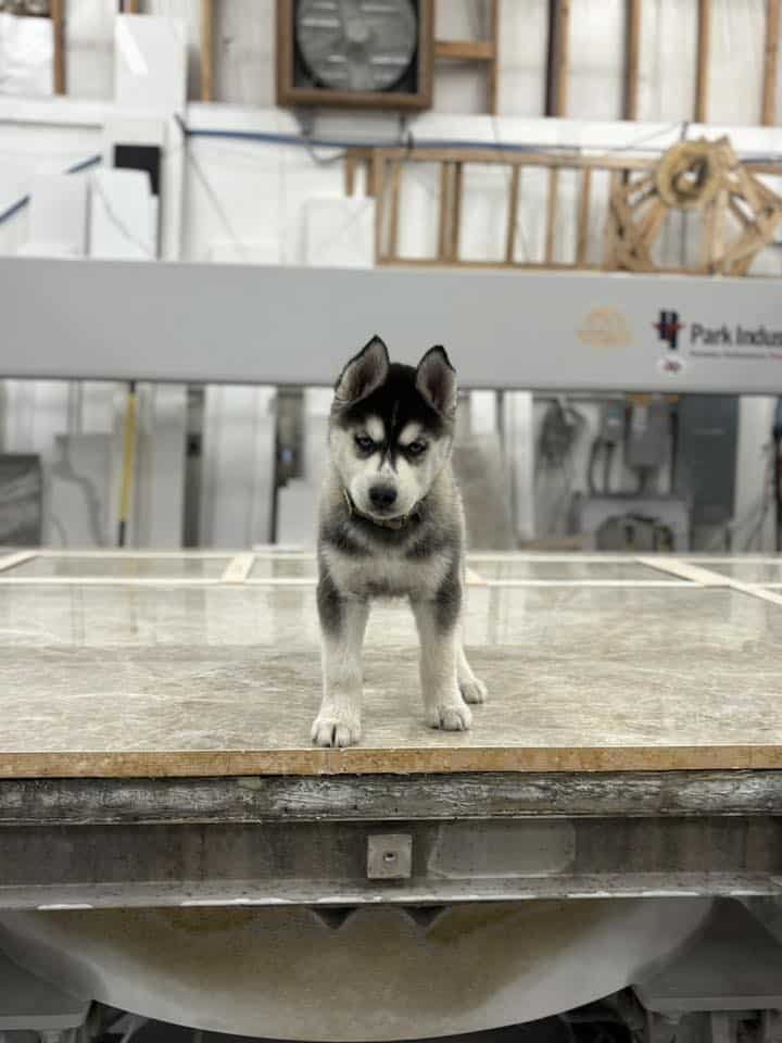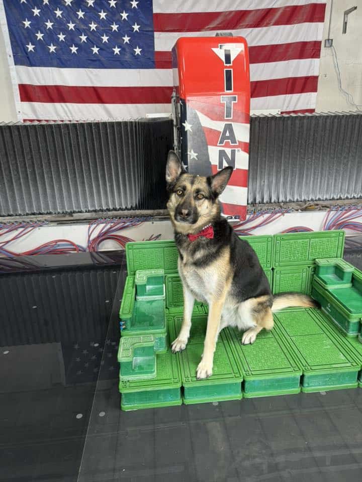 Captain, Eli, Molly, Willow, and Khaleesi of Mountain Marble & Tile stole the show as a team, posing together on a VOYAGER XP CNC Saw and proving teamwork really does make the dream work.