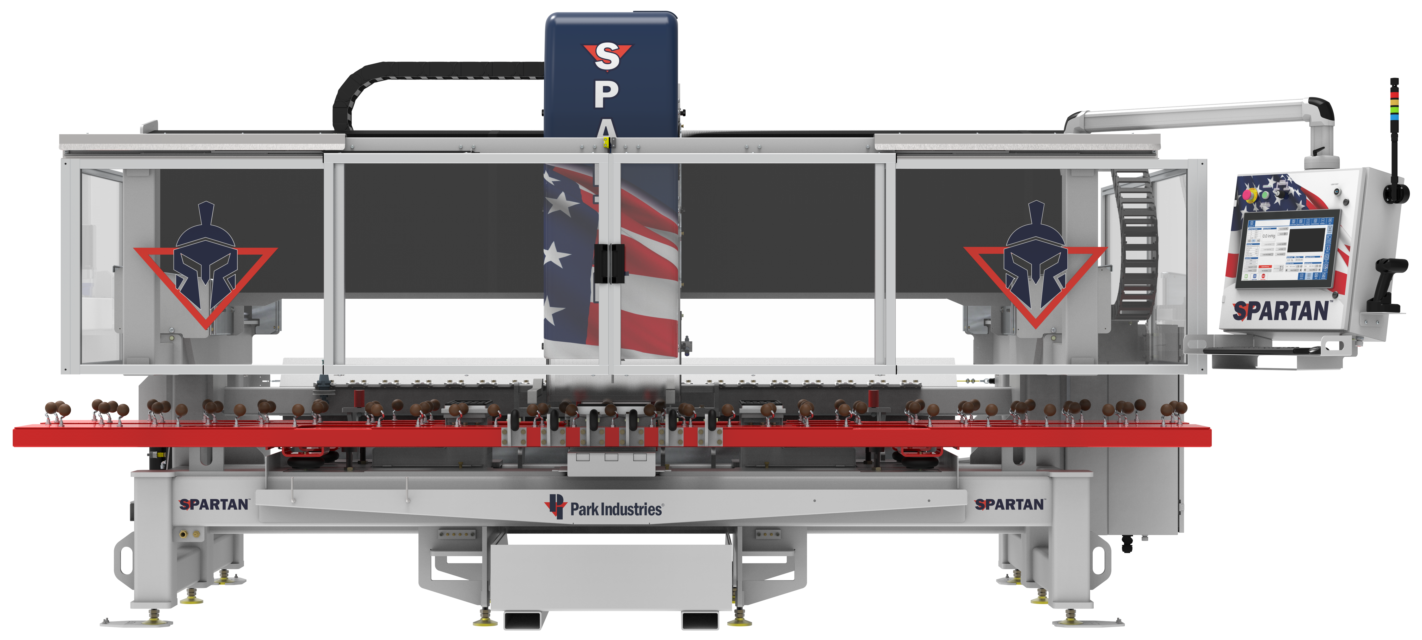 The most powerful sink machine in the market, SPARTAN can tackle sinks on parts of all sizes and materials with its 21hp spindle and a work area that doesn’t limit part size. SPARTAN cuts and polishes sink openings, cores faucet holes, drills sink anchors holes, and more with its 19 toolholders. SPARTAN’s built-in sink templates, fast Load N’ Go system, and flow-through design provide unmatched sink processing efficiency.