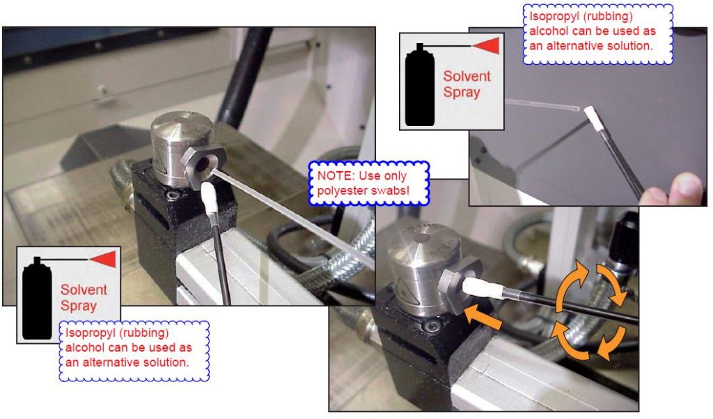 Insert cleaning tool and rotate 70 to 80 degrees.