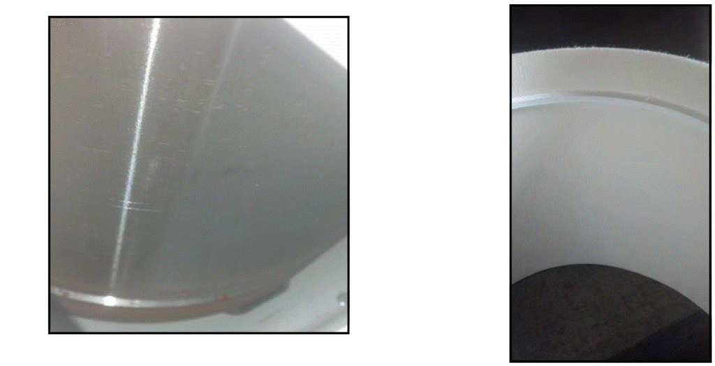 - Once the belt is removed, thoroughly clean the two (2) drive drums removing any rust or scale that has accumulated over time. Inspect and clean the alignment groove toward the bottom of the drums. The belt has a guide on it that runs in these grooves and any dirt or debris stuck in the groove could cause the belt to move at an inconsistent speed or cause a bulge.