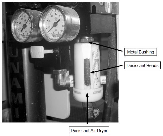 in the desiccant beads. Replace the Desiccant air dryer at least once every 6 months.