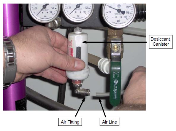 1) To replace the Desiccant air dryer, first disconnect the air line from the air fitting