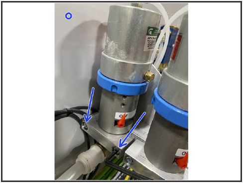 - Find the flow switch cable for the recycled water and cut the tie straps that hold the cable.