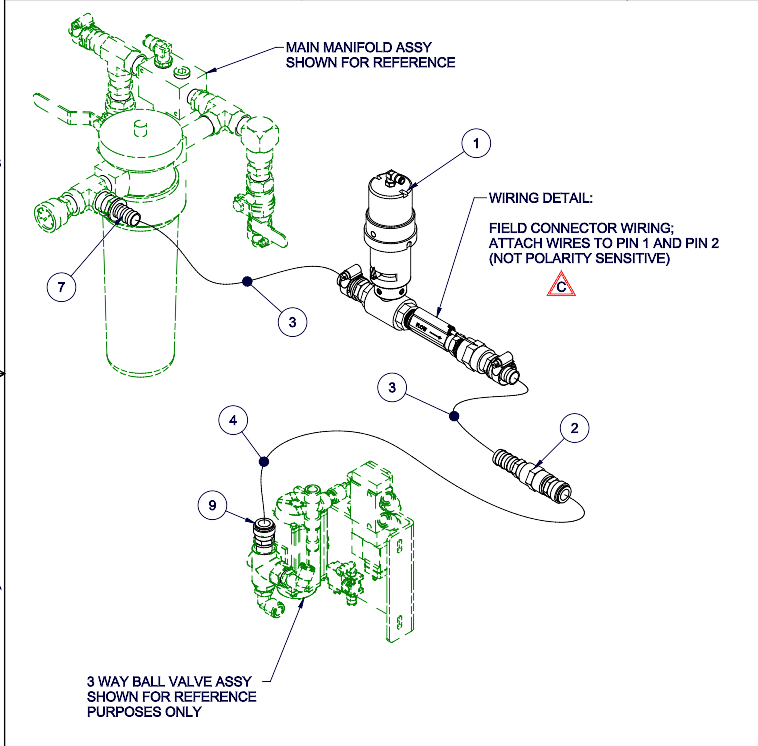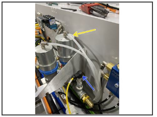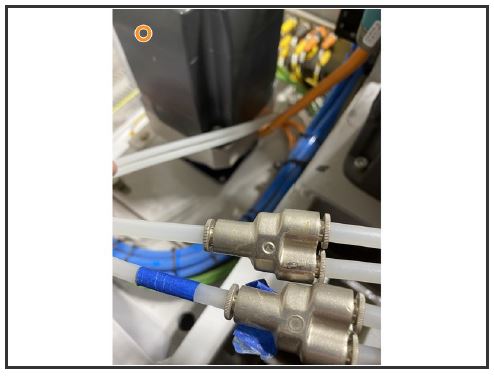 - Second line runs from gantry tray manifold through gantry cable carrier to the old ball valve.