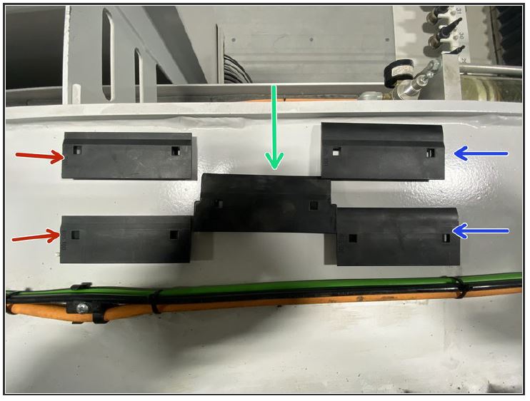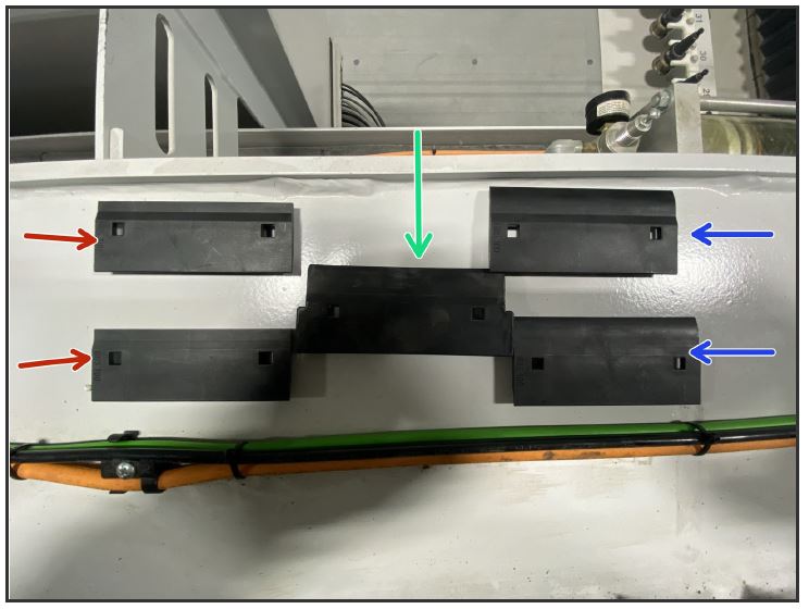 - Red arrow – Cover for the back side of cable carrier by cross travel motor