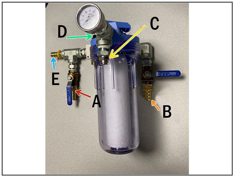 - Attach one end of the 40 foot piece to point B of the new ball valve.