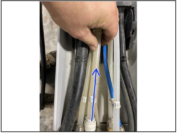 - Remove the tie straps so you can pull back the 5/8″ supply line back to the cross travel cable.
