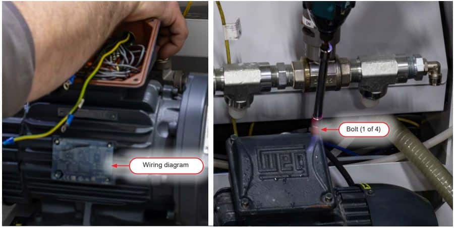 Guide showing how to remove your old vacuum pump and fittings to replace with a new one.