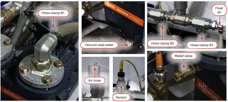 Confirm the vacuum relief valve is set correctly. See Replace – 5 HP Vacuum Relief Valve Service Guide