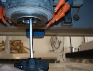 The clamping set should be loose enough to drop out now. (Go to step 6 if the spindle is turning and the clamping set will not come loose.) Using a flashlight look into the opening of the spindle and check for rust, corrosion or damage.