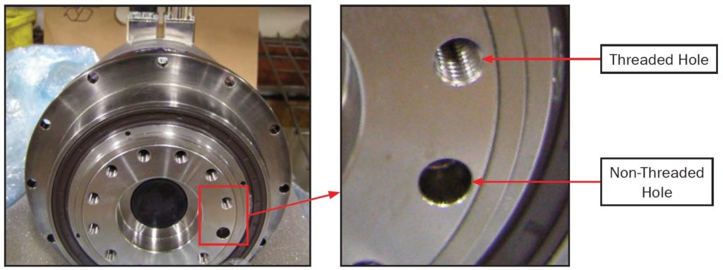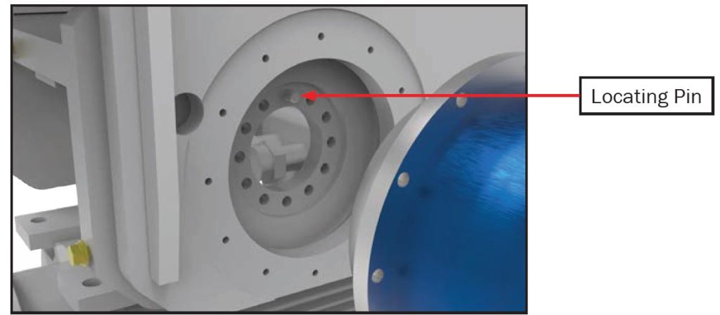 Identifying the locating pin and bolt holes prior to reassembly