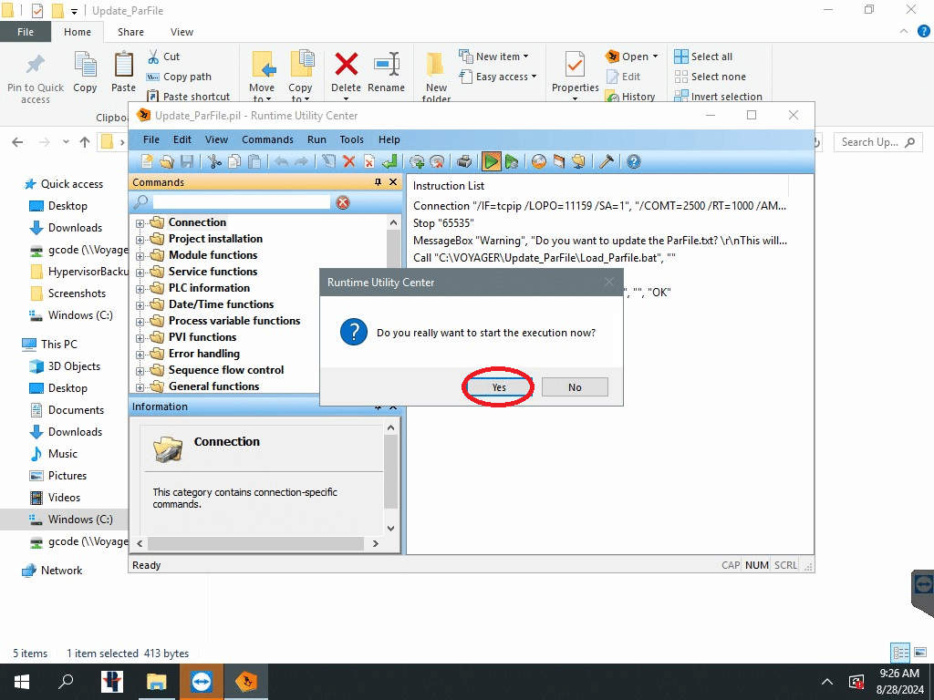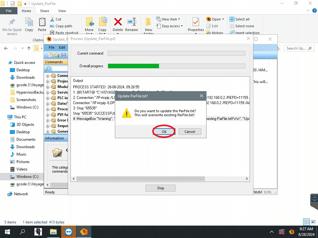 It may ask you if you would like to overwrite the existing ParFile.txt. Select OK.