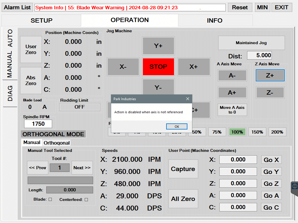 This guide will help you restore the values on your machine if they got erased out. This guide is for Voyager that are running Hypervisor/Windows 10. 1013: Axis/Axes not referenced alarm.