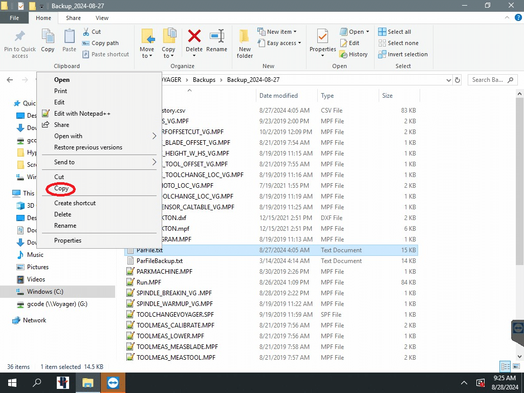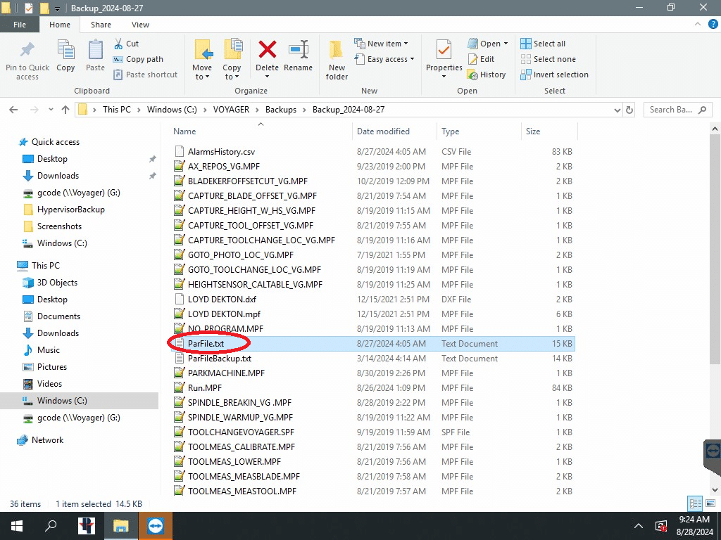 Highlight the file named ParFile.txt. It should have the same date in the date modified as the folder you opened.